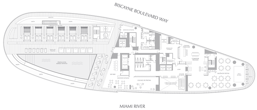 Cada aspecto de las Aston Martin Residences en 300 Biscayne Boulevard Way ha sido cuidadosamente considerado para proporcionar el equilibrio perfecto entre optimización del espacio, máxima iluminación y vistas panorámicas, junto con todas las exigencias para complacer los estilos de vida más modernos y cosmopolitas. Adicionalmente, todos los espacios de amenidades, tanto internos como adyacentes al edificio, han sido ubicados estratégicamente para su máxima comodidad y accesibilidad.